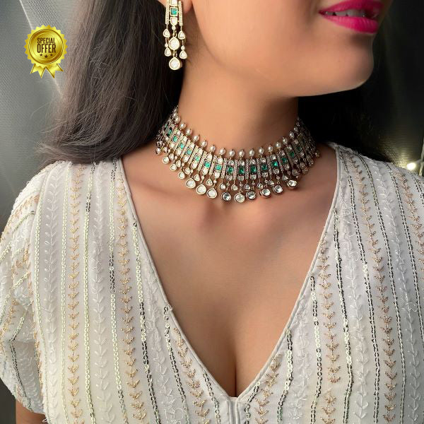 Luxury & Beautiful Divya Green Polki Necklace Set